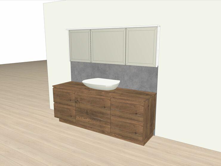 Waschtischschrank für Aufsatz-Waschbecken und Spiegelschrank für Wandnische.