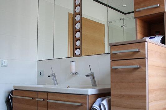 Waschbeckenschrank und wandbündige Spiegelschränke