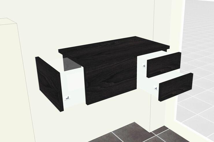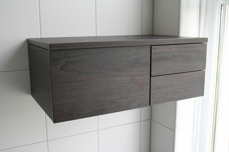 Diesen kleinen aber feinen Schminktisch haben wir nach Kundenwunsch mit mit verschieden großen Schubkästen ausgestattet und als Hängekommode montiert. Durch die zwei verschiedenen Öffnungsrichtungen, Größen und Ausstattungen der Schubkästen, können alle unterschiedlichen Kosmetika untergegracht werden.