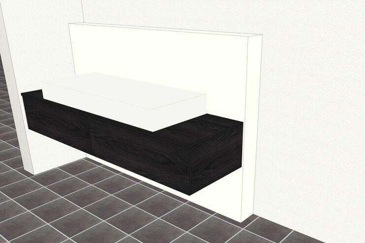 Der mittig sitzende Syphon wird durch die seitlich überstehenden Blenden komplett verdeckt. Trotzdem ist es möglich, jederzeit ungehindert für Revisions- und Reparaturarbeiten schnell an den Syphon zu gelangen. Durch die 3D-Planung konnten die Kunden auch hier vorab sehen, wie sich der Waschtisch in den Raum einfügt.