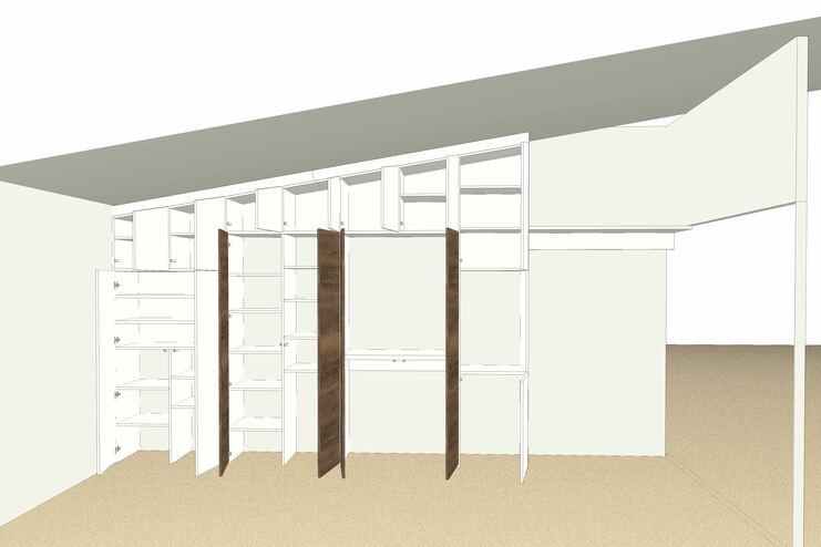 Dieses stauraumwunder in Form eines Dachschrägen-Schrankes mit Türen haben wir nach Kundenwunsch geplant und realisiert. Im Vorfeld wurde mit unseren Kunden besprochen was alles in den Schrank untergebracht werden soll, dies haben wir ausgemessen und entsprechend diverse Fächer dafür konstruiert.