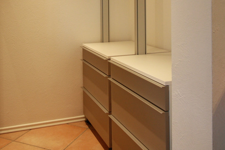Da der erster Eindruck zählt, ist es wichtig, dass eine schöne Garderobe mit praktischen Haken, Bügeln und Ablagen ausreichend Platz für Kleidungsstücke, Schuhe, Schirme, Schlüssel und mehr schafft. Wir planen und realisieren Ihre Garderobe so individuell und funktionell, wie Sie es wünschen und benötigen.