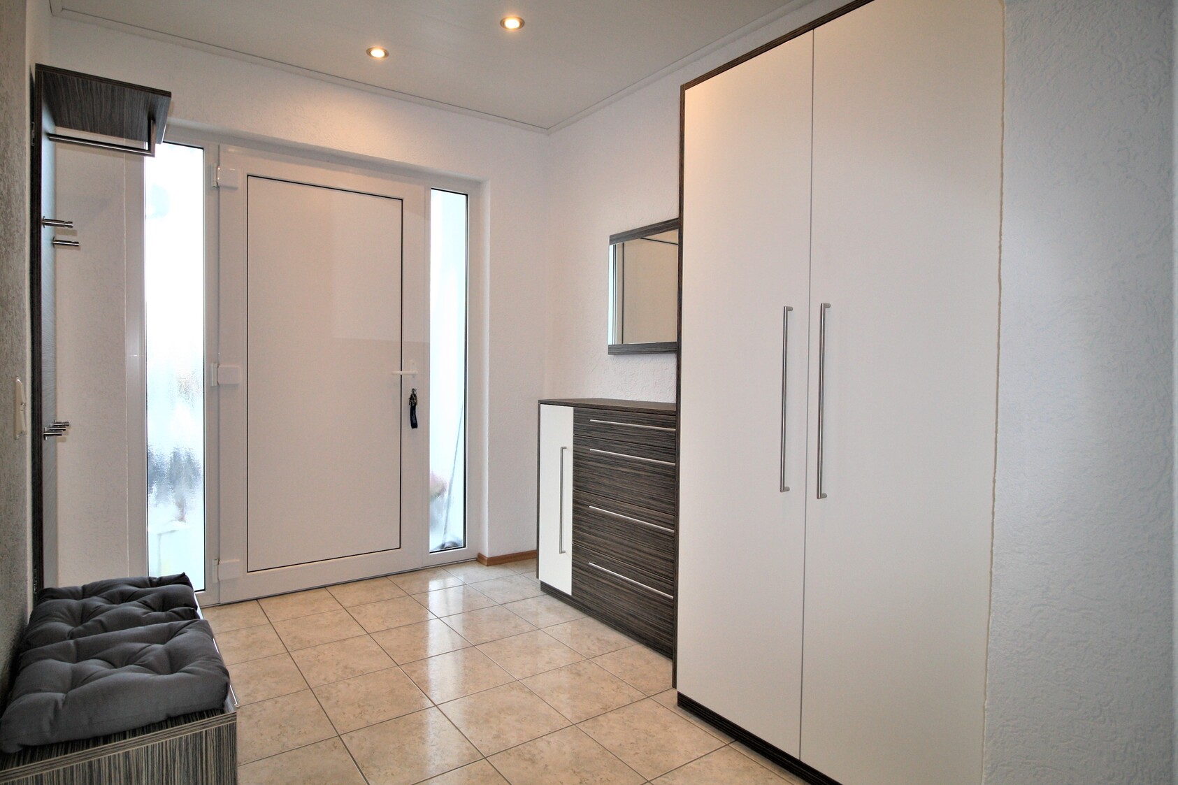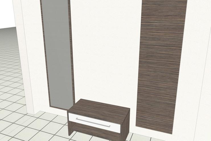 Zum einen für Gäste ein offenes Garderobenkonzept als auch für die eigene Familie ein eher geschlossenes Schrankkonzept mit Türen und Schubkästen, hinter denen Schuhe, Taschen, Mützen, Handschuhe, Schals, Jacken und Mäntel verstaut werden können. Wir haben das Ganze nach einer sorgfältig vorangegangenen 3D-Planung nach Kundenwunsch realisiert.