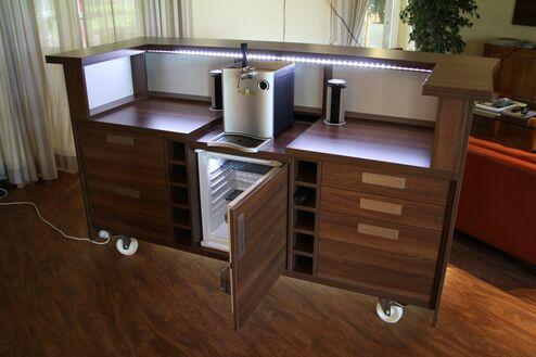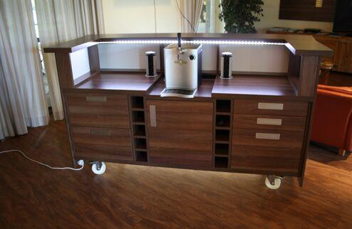 Mobile Theke in Nußbaum mit LED-Beleuchtung