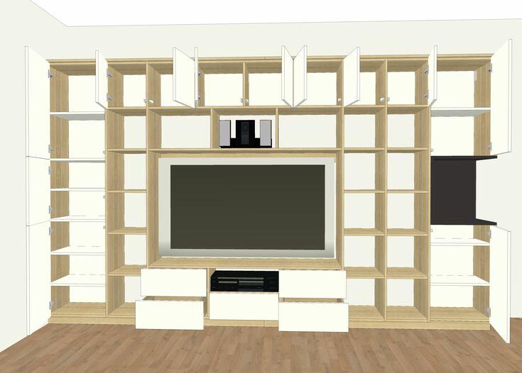 Gerenderte Planung der Wohnwand mit Möbelfeuer® und Almwiese