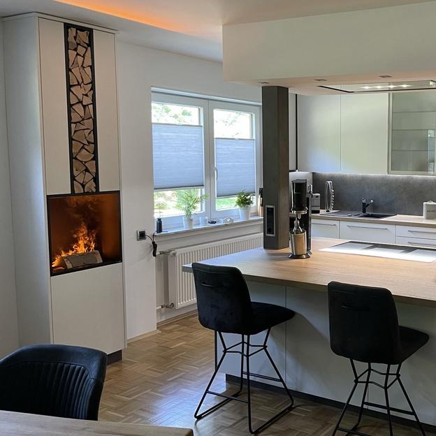Wir von der Schreinerei Oliver Gorr bringen Ihnen Gemütlichkeit mit einem Möbelfeuer in Ihr Haus. Das Knistern eines warmen Kaminfeuers ist für viele Haus- oder Wohnungsbesitzer ein großer Wunsch. Es bringt ein gemütliches Flair in die Wohnräume und hat auf viele Menschen eine beruhigende Wirkung. Ein klassischer Kamin mit dem offenen Feuer bringt allerdings auch viele Gefahren mit sich. Die Sicherheit ist nicht besonders hoch und zusätzlich verursacht ein Kamin Ruß, Dreck und Arbeitsaufwand. Er muss nach jeder Benutzung gesäubert werden und mit neuem Holz, welches ständig auf Vorrat sein muss, bestückt werden. Das Möbelfeuer aus unserer Schreinerei bietet eine gefahrlose und absolut bequeme Alternative. Anstatt der realen Verbrennung von Holz wird ein täuschend echtes, aber künstlich erzeugtes Flammenbild eingesetzt, wodurch Sie trotzdem eine wohlige Stimmung in Ihrem Wohnzimmer erfahren. Sie können sich das Feuer gerne in unserer Ausstellung anschauen und sich überzeugen lassen.