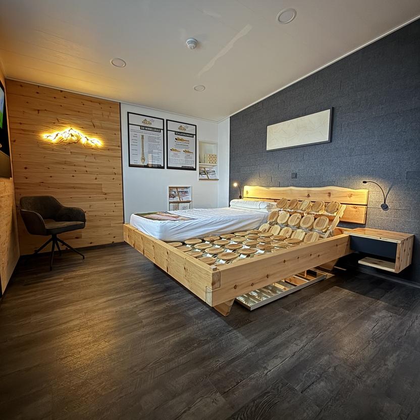 Hier können Sie unsere individuell gefertigten Möbel aus unserer Schreinerei live ausprobieren und in unserem Schlafzimmer Zirben(t)raum das natürliche und gesunde Schlafsystem Relax 2000 direkt ausprobieren.