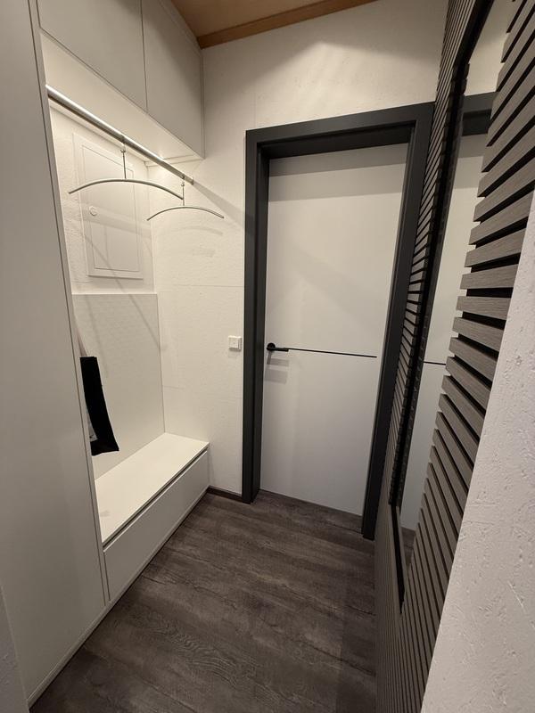 Die im Flurbereich integrierte Einbaugarderobe oder das Treppenhaus mit einer 3D Wandverkleidung sind neben modernen Türen, Wandleuchten aus Holz und einer Möbelfeuer-Säule, nur ein kleiner Vorgeschmack unserer Räumlichkeiten.