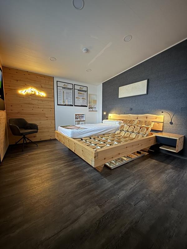 Hier können Sie unsere individuell gefertigten Möbel aus unserer Schreinerei live ausprobieren und in unserem Schlafzimmer Zirben(t)raum das natürliche und gesunde Schlafsystem Relax 2000 direkt ausprobieren.